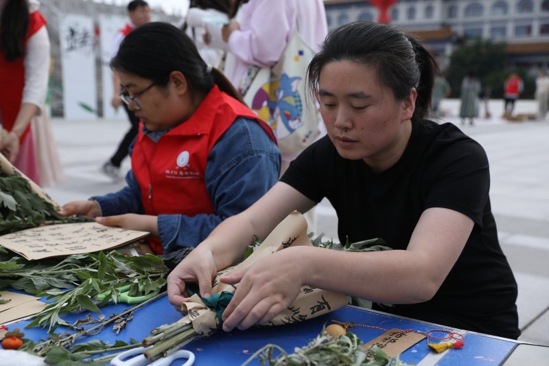 DIY體驗區(qū)熱鬧非凡,五彩繩、香囊、艾葉花束、艾草棒等材料應(yīng)有盡有,員工自由選擇心儀的制作項目,親手打造出獨具端午特色的紀念品,為家人和朋友驅(qū)邪納福、連接好運。